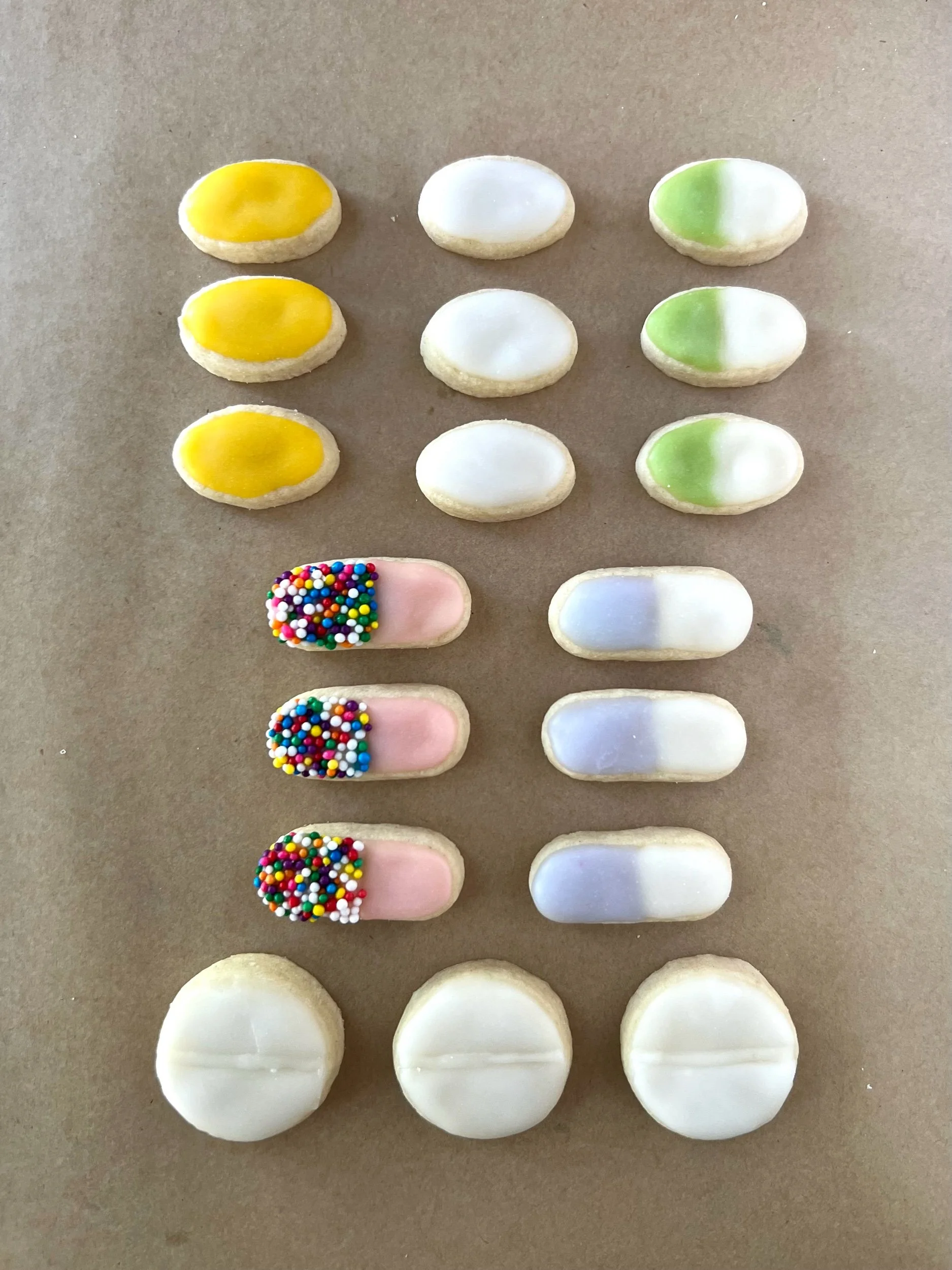 mommy’s pills—various pill shapes and colors totaling in 18 ultra mini cookies
