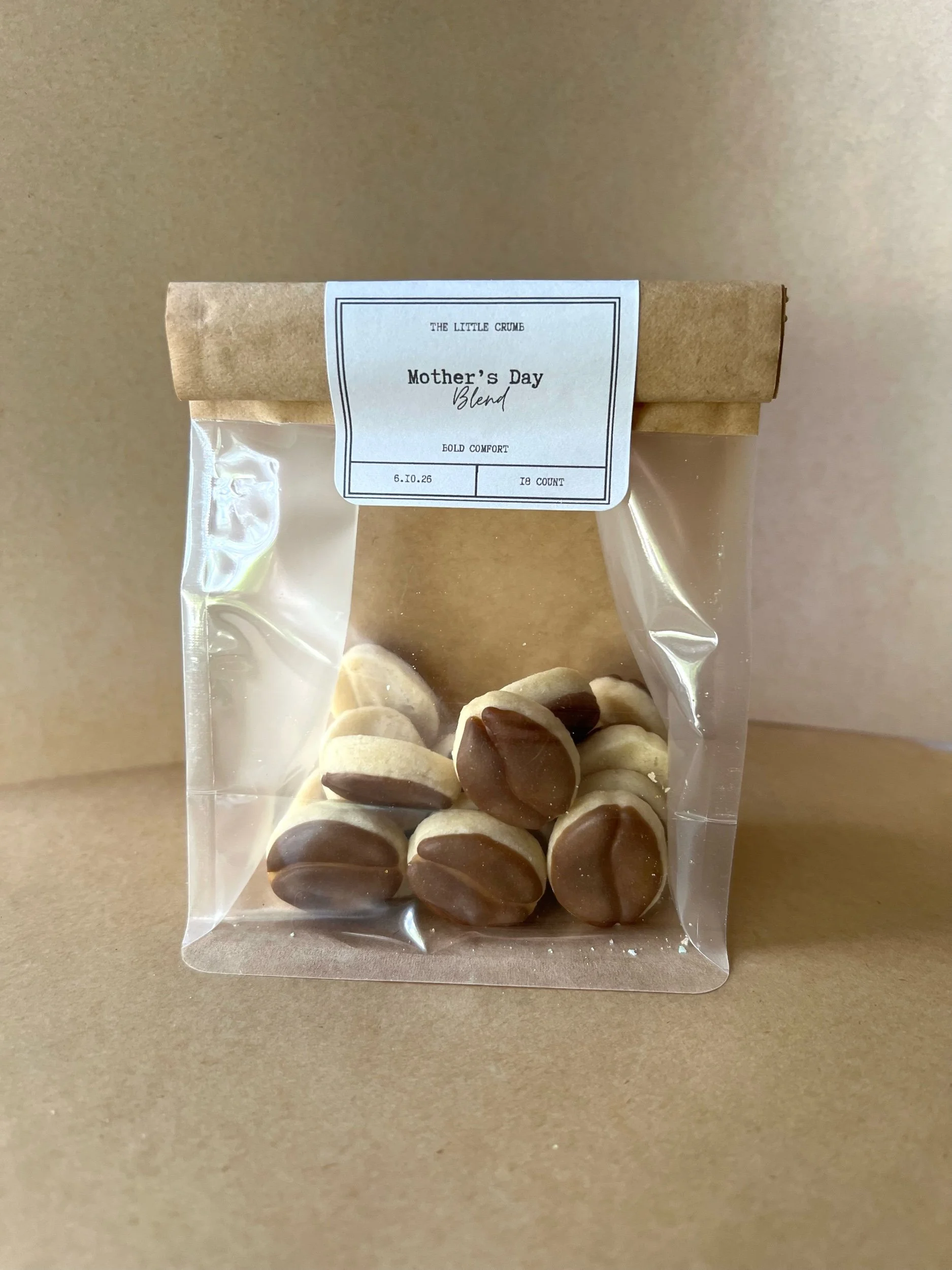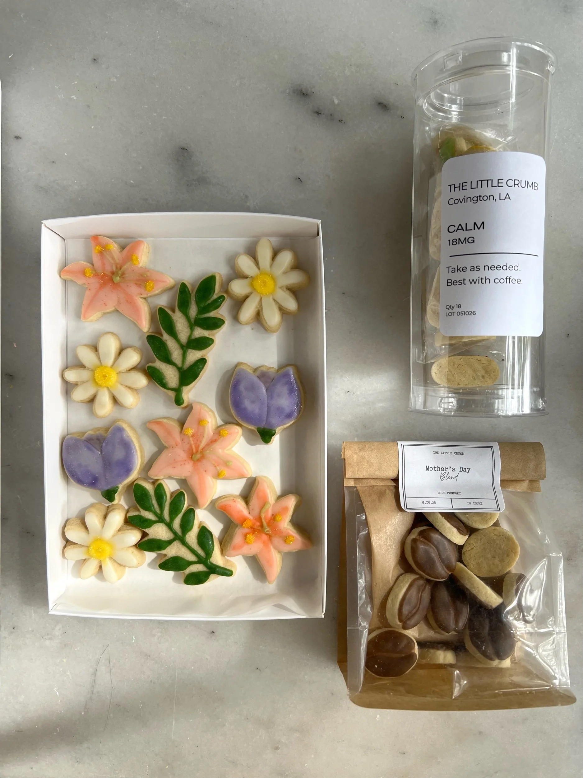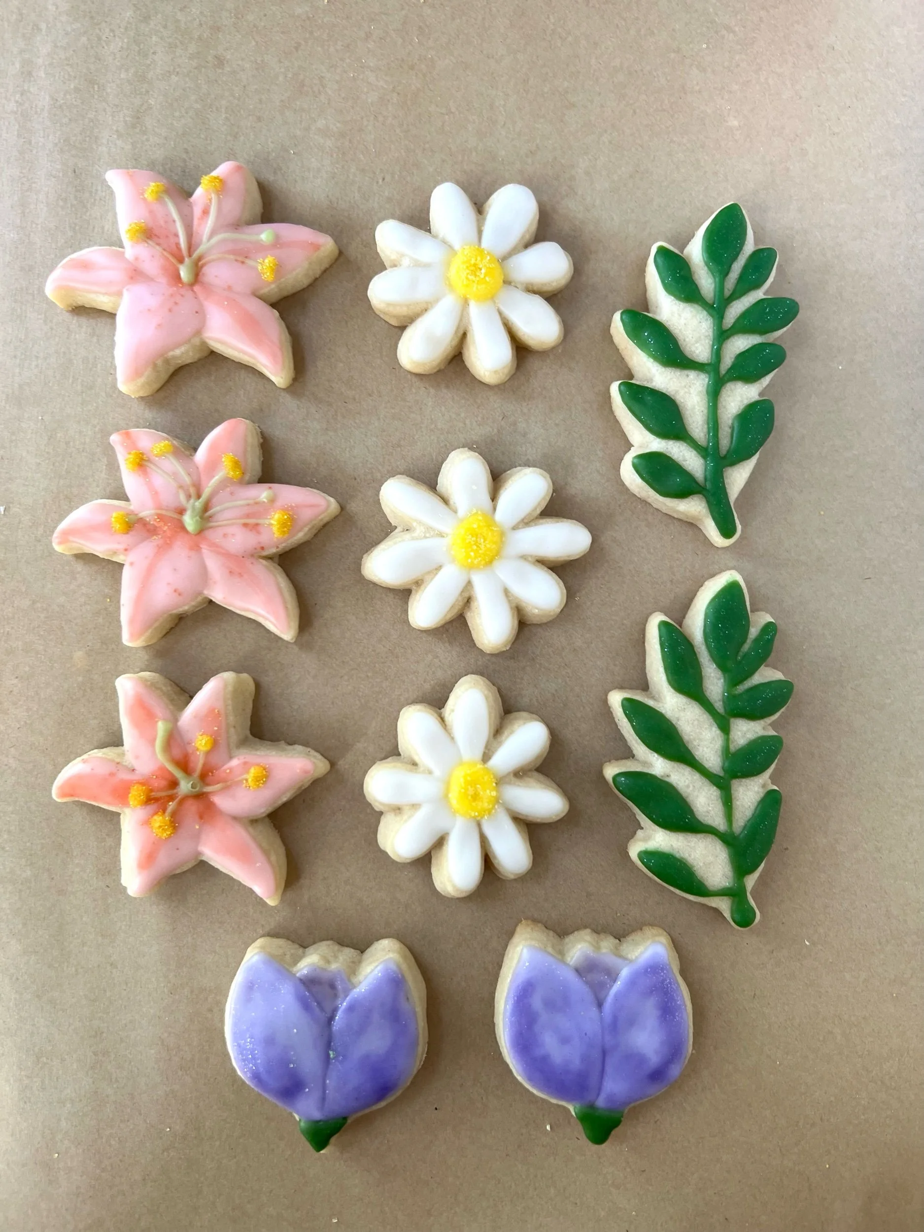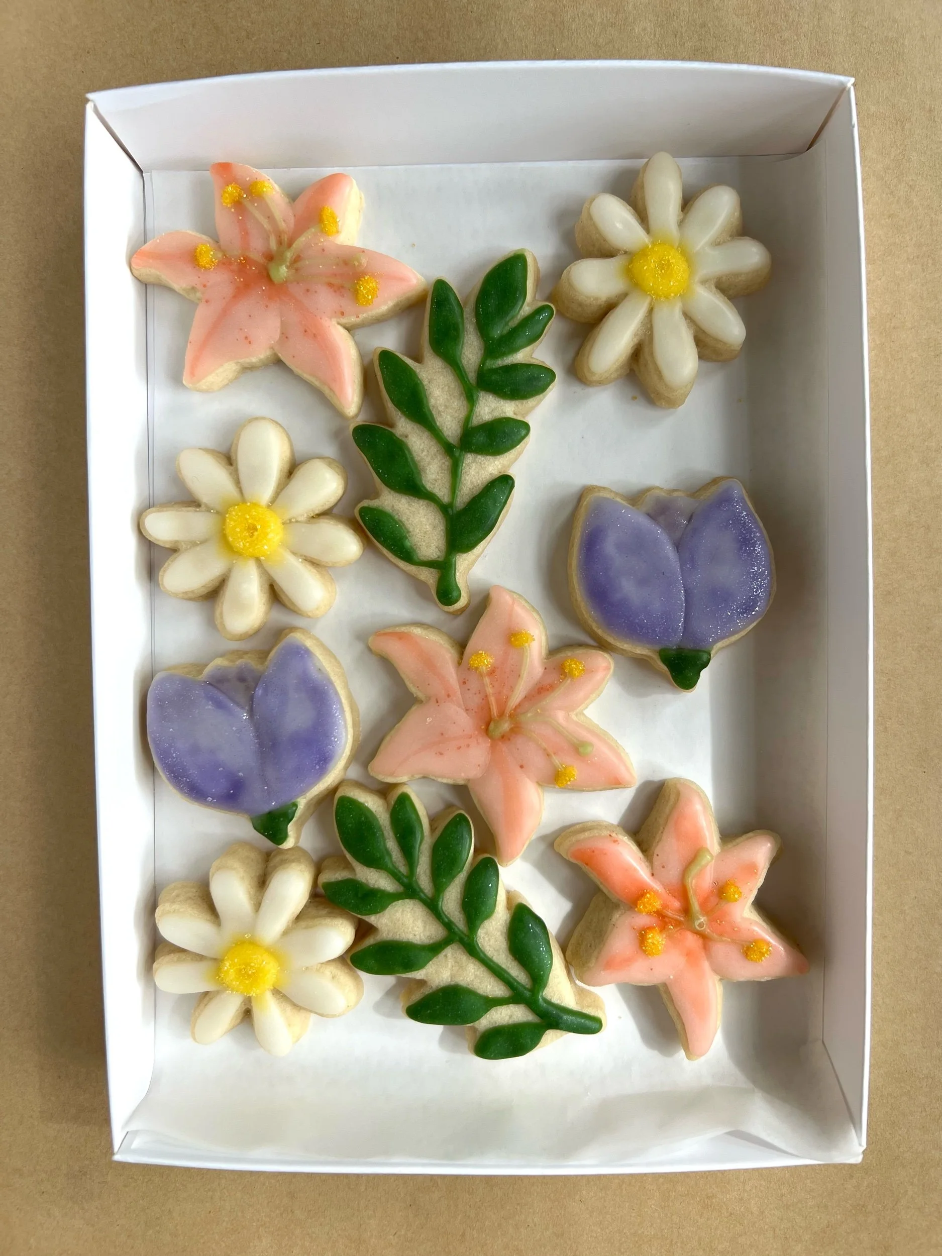 small, soft, and delicious, each order includes a curated set of sugar cookies, each cookie measuring about 2 inches or less.